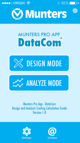 The ProApp-DataCom application was developed to give users a tool that will allow them to determine the correct airflow rates for sizing of data center cooling air-handling systems, corrected for altitude and temperature, and also to establish air-handling unit efficiency metrics from field measured values of airflow, temperature difference, and input power. The app has a mode for design and another mode for analysis. The user can select either IP or SI units of measure. Users can send any results to their email, and optionally to Munters for review and further analysis.