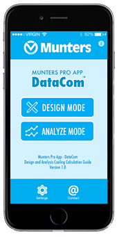 Design Mode to determine the cooling airflow rates given a total room heat load to be rejected, target supply and return temperatures, room dew point, and the altitude for the site location. The app will also suggest Munters’ air-handling unit sizes and quantities based on the results. Munters offers energy efficient direct or indirect air-side economizer cooling systems with optional DX or chilled water trim cooling as required.