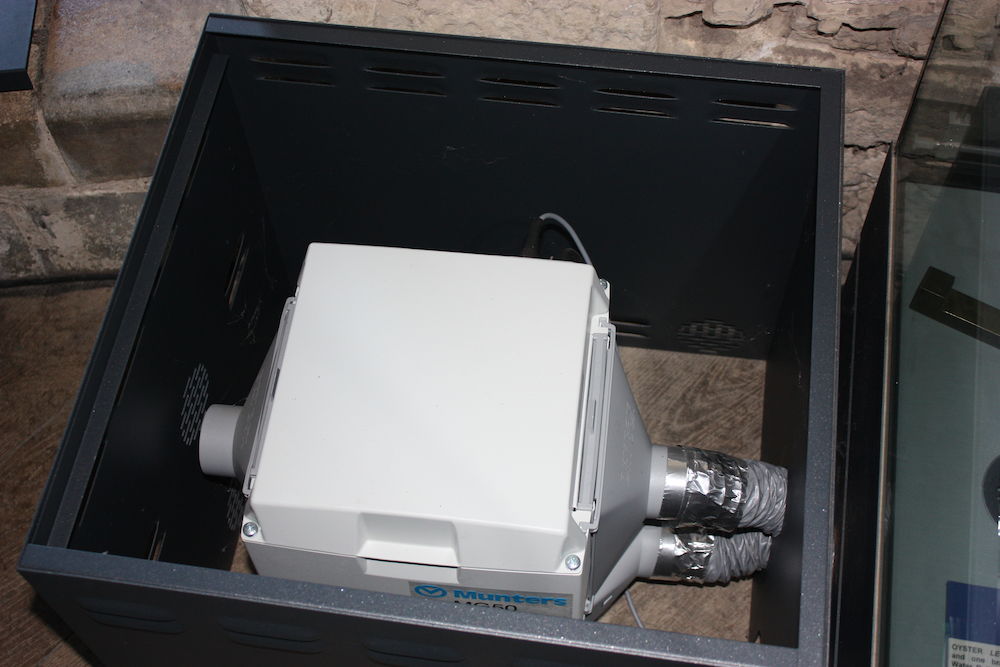 除了實現(xiàn)一致的氣候條件外,美學(xué)還是博物館的重要考慮因素。盡量減少對博物館和游客體驗的影響是至關(guān)重要的,同時因為奧福德城堡受到英國遺產(chǎn)協(xié)會的保護(hù)和擁有,所以對其本身沒有任何影響。MG50除濕機(jī)的優(yōu)點之一是無需安裝在墻壁上,易于移動并且足夠小,不會妨礙游客對展示柜的視野。每個MG50除濕機(jī)都放置在展示柜旁專門設(shè)計的小金屬盒內(nèi),并通過更少的管道工作提供干燥空氣。