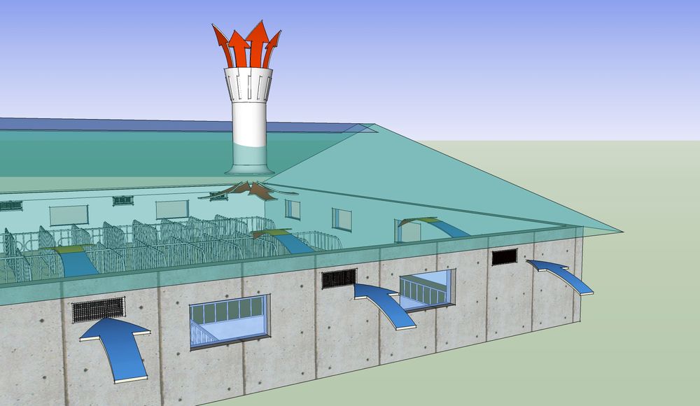 Thorupgaard農(nóng)場(chǎng)的這三座建筑在結(jié)構(gòu)設(shè)計(jì)和環(huán)境條件方面提出了獨(dú)特的設(shè)計(jì)挑戰(zhàn)。為確保負(fù)壓通風(fēng)系統(tǒng)正常工作,設(shè)計(jì)團(tuán)隊(duì)評(píng)估了以下參數(shù):